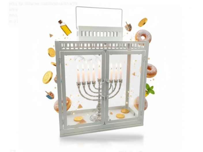 בית חנוכיה לבן 50 ס"מ זכוכית מחוסמת 40x20x50 ס"מ - התמונה להמחשה בלבד