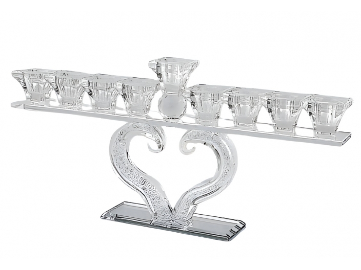 חנוכיה קריסטל לב מידה 36x18 ס"מ