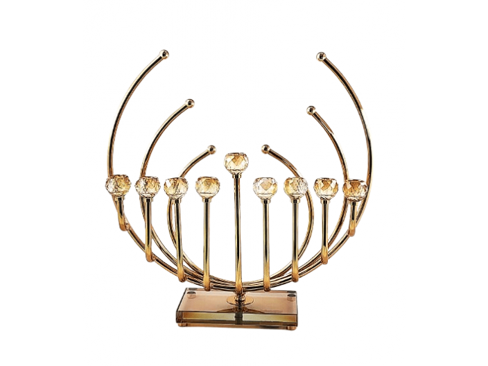 חנוכיה מוזהבת קשת עם קנים מקריסטל 38x42 ס"מ