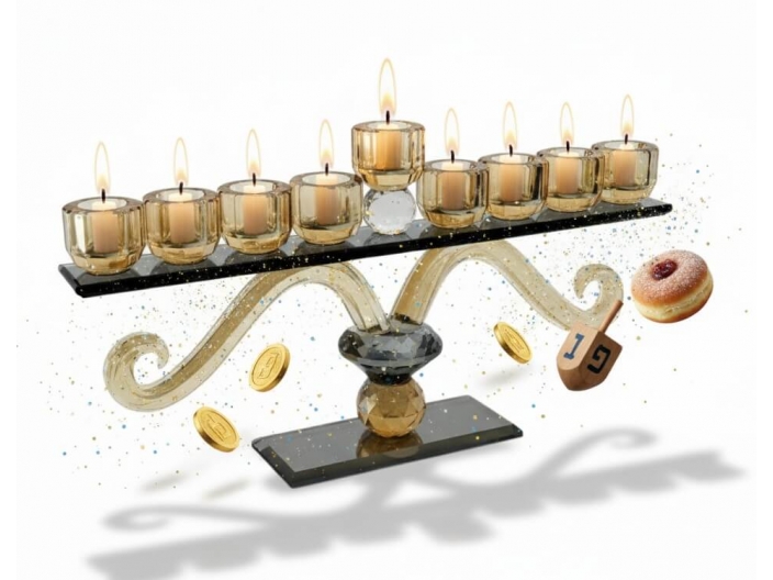 חנוכיה קריסטל ורד שחור 36x17 ס"מ