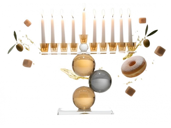 חנוכיה קריסטל לילך שחורה 26x25 ס"מ,התמונה להמחשה בלבד