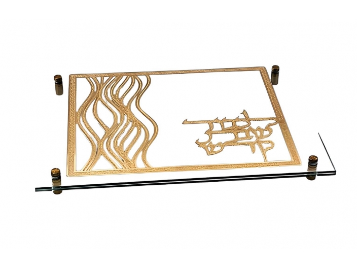 מגש חלה לשבת זכוכית דגם ענבר מוזהב 38x27 ס"מ