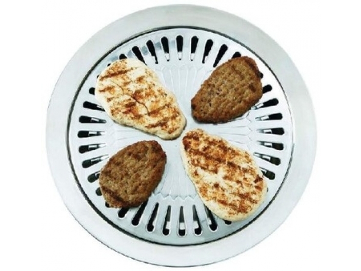 צלחת הגריל בעלת פתחי ניקוז מהם מתנקזים השומנים ומהם חודרים האדים.