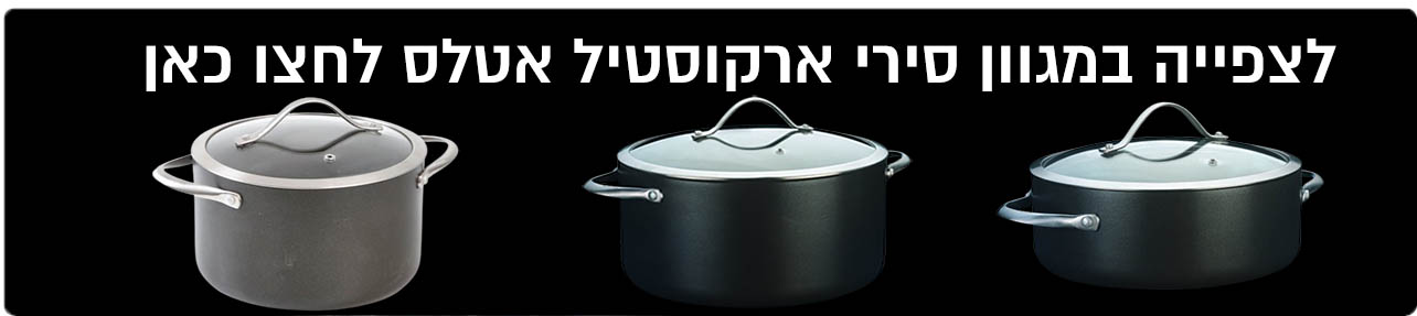 ציפוי היברידי ARCOSTEEL MAGIC משלב נירוסטה מוגבהת בתהליך צריבה מיוחד עם ציפוי NON STICK ומאפשר שימוש בכלי מתכת ללא חשש לשריטות.
