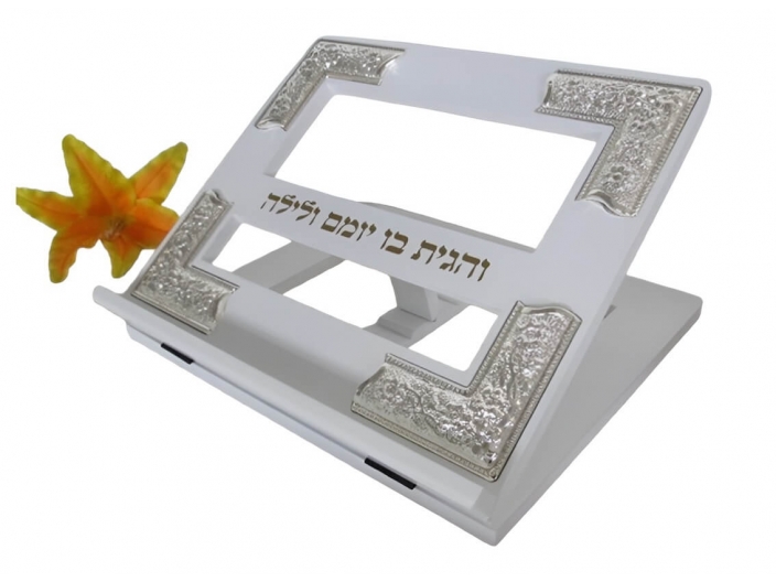 סטנדר שולחני עץ לבן מוכסף בצדדים