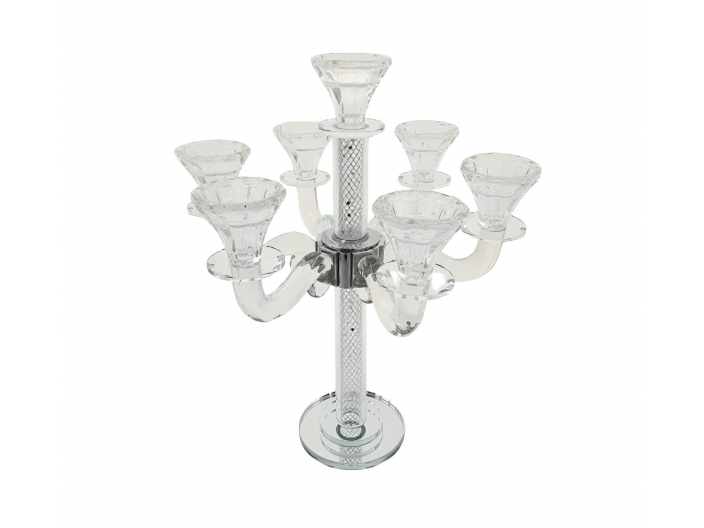 פמוט שבת קריסטל 7 קנים סליל כסף 34 ס"מ