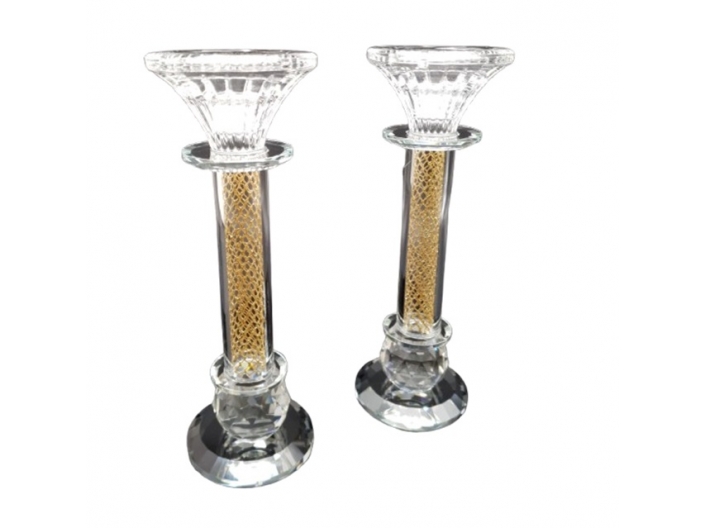 סט 2 פמוט קריסטל סליל זהב 20 ס"מ