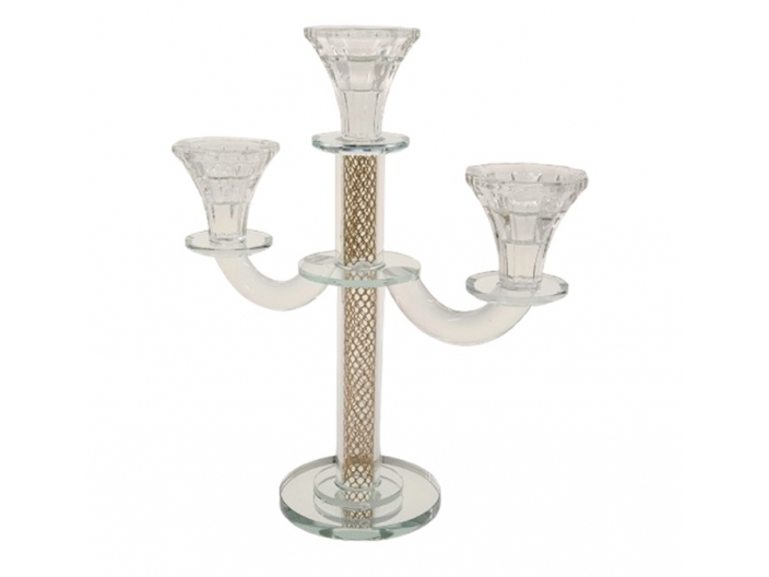 פמוט קריסטל 3 קנים סליל זהב 26 ס"מ