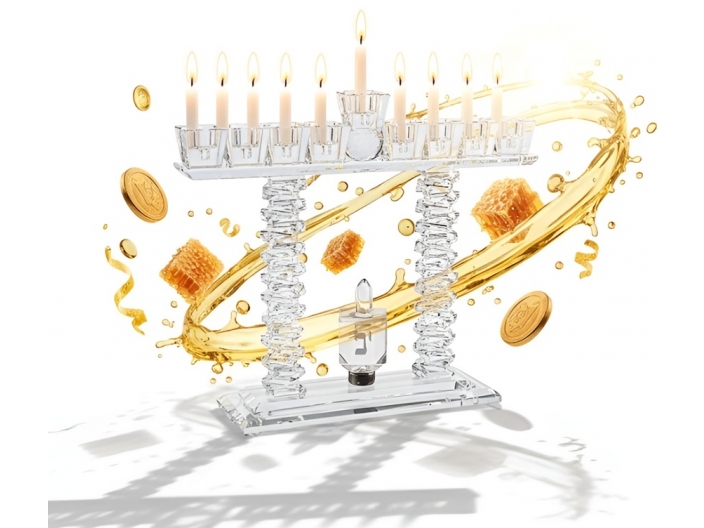 חנוכיה מקריסטל מדורג כולל סביבון 24x27 ס"מ,חנוכיה מקריסטל איכותית ביותר,מגיעה באריזה אטומה המאפשרת משלוח בטוח לכל רחבי הארץ.כולל סביבון.,ניתן להשיג באתר מבחר חנוכיות.