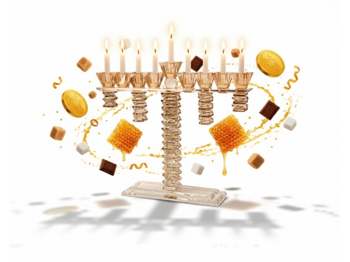 חנוכיה קריסטל 33x36 ס"מ סדרת גולד טופ,ניתן להשיג מבחר חנוכיות אלגנטיות ואיכותיות באתר לחגיגת חג החנוכה.