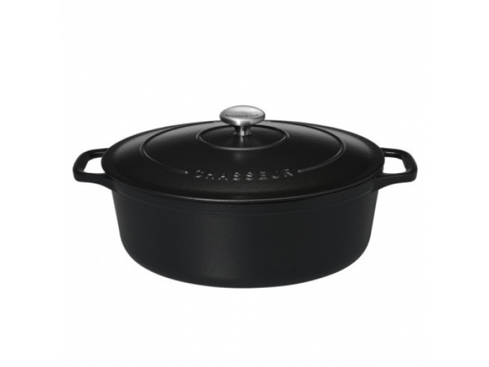 סיר ברזל אובלי Chasseur בנפח 7.1 ליטר קוטר 33 ס"מ תוצרת צרפת צבע שחור. פסגת הבישול הצרפתית אצלכם במטבח