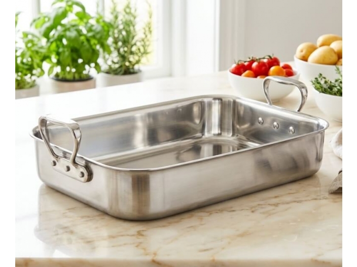תבנית רוסטר נירוסטה 30x40 ס"מ גובה 7.6 ס"מ ,ידיות נירוסטה