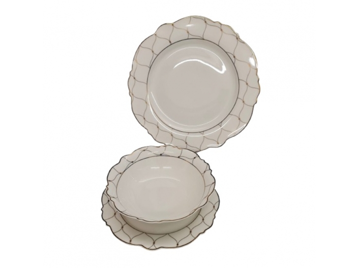 מערכת אוכל 18 חלקים פורצלן פס זהב